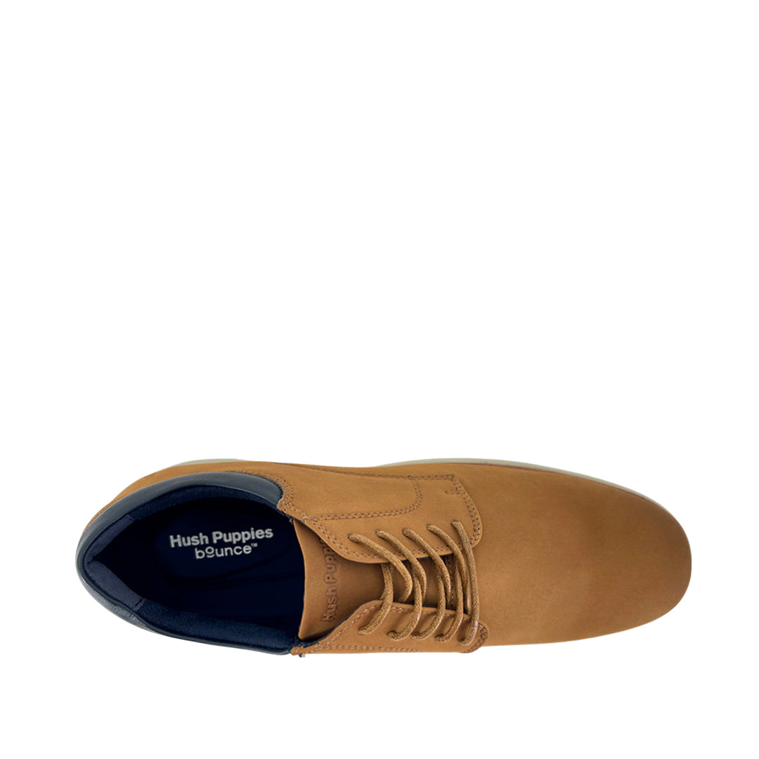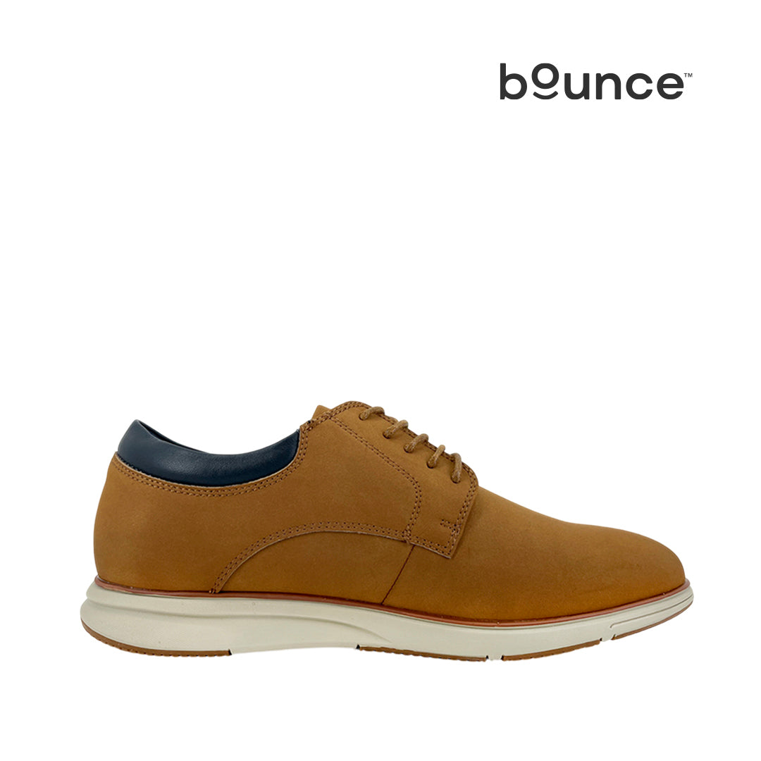 Los derby shoes Wallace para hombre en color tan, con cierre para amarrar y fabricados en cuero, cuentan con tecnología Bounce. Su plantilla extraíble ofrece rebotes de energía en cada paso, garantizando comodidad durante todo el día. Gracias a su alta memoria, la plantilla recupera su forma original después del uso, brindando una durabilidad superior frente a materiales que solo proporcionan confort momentáneo.