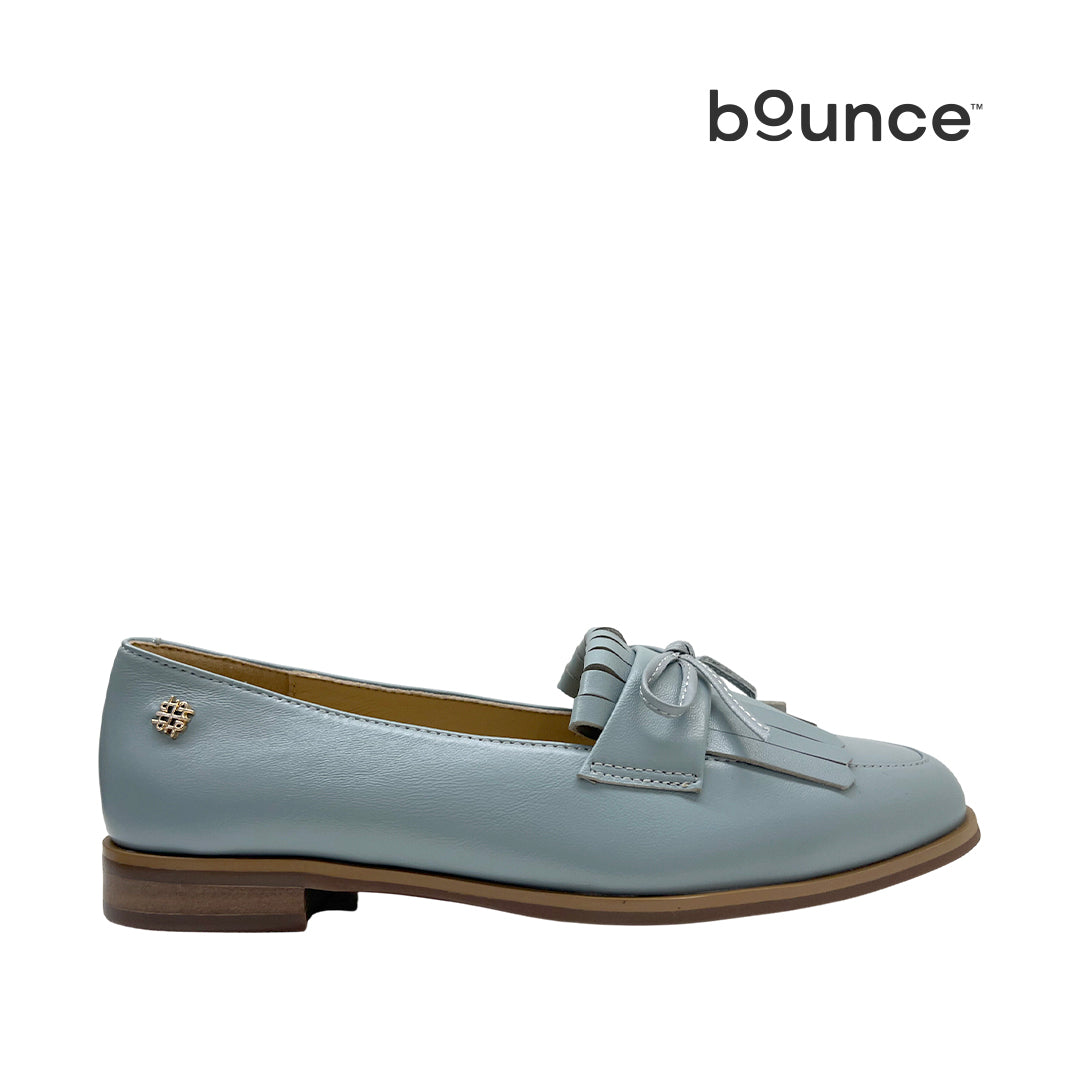 Mocasines Eleonora 6 para mujer color celeste, elaborados en cuero y con tecnología Bounce™. Incluyen plantilla extraíble de alta memoria que aporta rebote, recupera su forma y brinda comodidad y durabilidad durante todo el día.